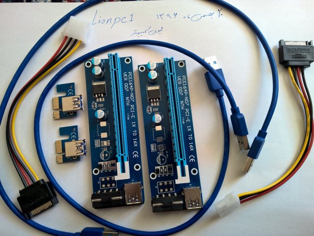 بسمه تعالی سلام و عرض ادب با فروش 5 عدد رایزر در خدمت دوستان محترم انجمن هستم. 3 کارکرده با کارکرد 1 تا 2 سال ( حدود 1.5 سال) و 2 عدد نو هست. که از سال 2017 2018 داخل وسایلم مونده بود. کارکرده ها تا زمانی که استفاده میشده سالم بوده و نو ها از لیون تهیه شده و البته امکان تستش رو ندارم و بدون تضمین فروخته میشه و مسئولیت تست قبل استفاده با خریداره . متعلقات مطابق عکس هاست. 4 رایزر از نوع ورودی مولکس و 1 عدد ساتا پنج عدد کابل usb 4 عدد تبدیل برق ساتا به مولکس و 1 عدد مولکس به ساتا پنج عدد اتصال usb به pcie x1 قیمت پایه 900 فوری 1100 ارسال با پست پیشتاز یا ویژه ( رایگان در صورت خرید فوری). موفق باشید