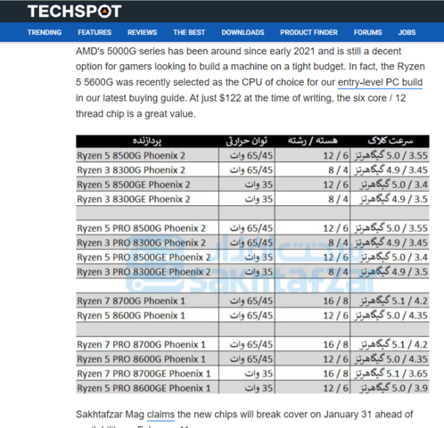 1. خیلی اتفاقی این موضوع رو الان دیدم شاید جالب باشه که اخیرا نویسنده سایت techspot که ایرانی هم نیست برای تیتر خبری خودش یعنی AMD Ryzen 8000G APU specs, benchmarks, and release date leaked از سایت sakhtafzarmag استفاده کرده! 😁برای کشور ما که همیشه پیشرو در زمینه ترجمه مقالات هست خیلی جالبه یک سایت فناوری خارجی این پوشش خبری رو ایجاد کرده @ARMIN شیرینی یادت نره🤲🏻