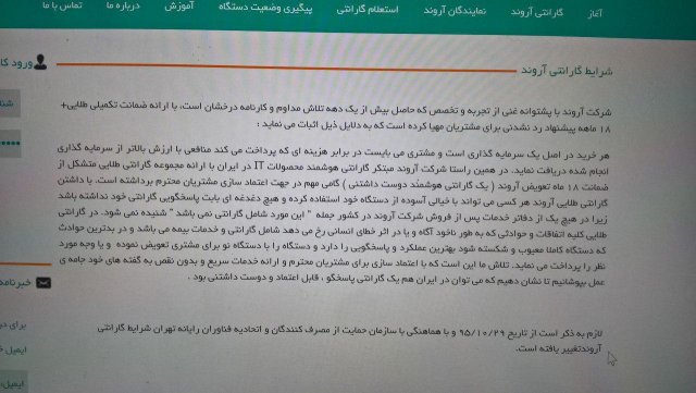 گارانتی طلایی آروند داره و حتی تبلت بشکنه هم تعویض میکنن . شرایط گارانتی طلایی آروند: