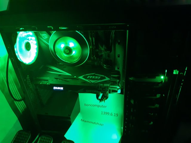 سلام خدمت دوستان و همکاران در لیون کامپیوتر سیستم عالی با مشخسات زیر درحد اک بسیار عالی و بدونه مشکل سیستم به صورت کامل فروخته میشه Cpu " Intel® Core™ i5-9400F Processor "9M Cache, up to 4.10 GHz Maderbord " ROG STRIX H370-F GAMING "Intel H370 ATX gaming motherboard with Aura Sync RGB LED lighting, pre-mounted I/O shield, dual M.2, onboard M.2 heatsink, SATA 6Gbps and USB 3.1 Gen 2. Ram " 16 gig =2/8 HyperX "Kingston HyperX Fury 8GB DDR4 2400MHz CL15 Single Channel Desktop RAM Graphics card "GeForce GTX 1070 Ti DUKE 8G"Boost Clock / Base Clock / Memory Frequency 1683 MHz / 1607 MHz / 8008 MHz 8GB GDDR5 Cpu Fan "Cooler Master MasterAir G100M RGB CPU Air Cooler with RGB Controller ssd "lexar NM610 250GB M.2 2280 PCIe Gen3x4 NVMe SSD Drive Power "Cooler Master MWE 550 Power Supply hard "6 t " 4t wd green / 2t Seagate caes "Green X3 Plus Viper Computer Case Monitor "Samsung C24F390HF 24 Inc /Green RGB Lighting Kit /A4tech XL-750BK Gaming Mouse /Epicgear DeFiant EGKFA1-BBEP-AMSG Gaming Keyboard /Gamdias NYX P1 Mouse Pad به بالا ترین پیشنهاد فروخته میشه فروش بیرون از تایپک نیز برقرار میباشد up -