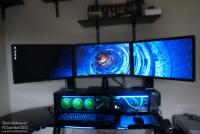 به پیشنهاد داداشه گلم Modan این سیستم رو گذاشتم امیدوارم جالب باشه! تو سایتش طرز ساخت هست. حجم عکس ها زیاد میشد نگذاشتم فایل زیپش 14 مگ شد! مشخصات : Asus Gene IV Motherboard i5-2500k Processor Radeon HD 7950 Graphics card with Water Cooling block (EK) 3x Dell UltraSharp (U2312HM) Monitors (in Eyefinity setup) with a modded ergotnomic mount. 3x Gelid UV Reactive Green fans XSPC Raystorm CPU waterblock XSPC RX360 Radiator PrimoFlex UV Green tubinh Swiftech pump لینک سایت -