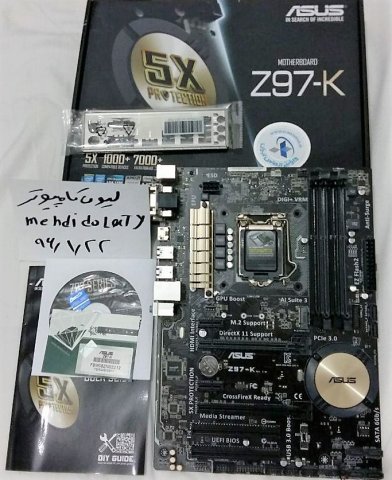 با سلام خدمت دوستان عزیز یک عدد مادربورد ASUS Z97-K به همراه کارتن و تمام متعلقات سی دی و دفترچه و پنل برای فروش موجود میباشد . مشخصات در سایت سازنده : https://www.asus.com/Motherboards/Z97K/ مادربورد کاملا سالم و بسیار تمیز نگه داری شده و با نگاه اول با مین نو فرقی نداره از دوست خوبم آقای امیر ترابی از کاربران لیون خریداری شده و اغراق نکنم مینبرد رو واقعا تمیز نگه داری کردن . این رو بگم مینبرد رو به خاطر پردازنده 4690k و رمهاشون که ایشون تاپیک زده بودن خریدم . چون ایشون تمام قطعات رو با هم میفروختن و من هم مجبور به خرید مین شدم دلیل فروشم هم چون یک عدد MAXIMUS vii دارم نیازی نیست . مینبرد چند ماهی گارانتیش مونده قیمت دستم نیست ولی قیمت روزش رو براتون لینک میدم http://www.kalagard.com/item/mother-boards/details/1810/ منصفانه قیمت بذارین