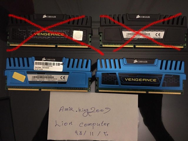 درود دوستان رمهای corsair vengeance ۴تا ماژول ۴گیگ ۲تا به رنگ های مشکی با گارانتی شرکتی دونه ای 80 ۲تا آبی با گارانتی تخت جمشید دونه ای 90 هرکدام سینگل هستند و یکجا فروخته خواهند شد رمها کم کارکرد هستند باهیچ قطعه ای تعویض ندارم !مشکی ها فروخته شد!