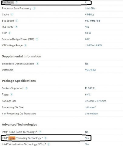 Intel 775 2Core 4Thread 4Mb