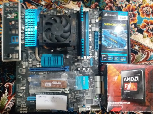 با سلام باند گیمینگ که از آکبندی دست خودم بوده و هر هفته سه چهار ساعت گیم زدم باهاش. کیه قطعات بدون ایراد می باشد. قیمت ها تخفیف نداره و فقط برای کسی که کل بندل رو بخره 590 هزار تخفیف داره. قیمت کل باندل 28590 تومان اگه کسی بخواد الان اینو جمع که باید کم کم 50 خرج کنه. باندل مادربوردو رم و پردازنده حتما با هم به فروش می رسد ولی بقیه قطعات تکی هم فروش داره اما در صورت عدم خرید یکجا ارسال به صورت رایگان می باشد و 48 ساعت مهلت تست دارد. اول واریز بعد ارسال در صورت در خواست واسطه لیون هزینه لیون با خریدار هدیه ما روی کل باندل: یک عدد هارد 500 گیگ اینترنال. یک عدد مادربورد DD2 بدون CPU و تخفیف 590 تومانی یک فروند مادربرد گیمینگ ASUS M5 A99X EVO R2.0 گارانتیش تموم شده بدون ایراد بدون تعمییر . کارت و متعلقات کامل قیمت اکبند وخالص آمازون 4900ملیون قیمت-40% ما 2900 ملیون یک عدد CPU AMD FX 8350 4GHZ 16M CACHE این CPU مخصوص گیم می باشد. با 8 هسته واقعی و 8 هسته مجازی 16 مگ کش. گارانتیش تموم شده بدون ایراد و بدون تعمییر. کارتن دارد. فن خنک کننده مخصوص AMD دارد قیمت آکبند و خالص آمازون 6200 تومان قیمت ما -40% 3700 تومان یک عدد RAM CORSAIR DDR3 1600 8GIG هدسینگ دار گیمینگ . گارانتی مادام.بدون تعیمیر. کارتن دارد قیمت 990 تومان مقطوع پاور GREEN 1050B-OC+ فول ماژوالار گارانتی تا 1401/6/19 بدون تعمییر کابل ها کامل کابل اصافه هم دارم در صورت نیاز. کارتن دارد دو تا از 6 پین ها روی دسته سیم ساتا تعموض شده .است. قیمت توو بازار 24 ملیون قیمت ما 14 ملیون مقطوع یک عدد گرافیکASUS RX 470 4G GAMEING STRIX دو ساله روی همین سیستم گیم بالا می باشد. قبل اون هم 5 ماه ماین شده بود. کارتن و مطعلقات دارد. بهتره دوستان خمیر رده بالا براش بزنن. اضافه خمیر گرین روی گرافیک داده می شود. فن عقبی تعویض شده ولی خود فن از 60% به بالا نویز داره.رو کارت یک فن CPU AMD اضافه داده می شود. دماش بالا می رفت با خمیر گرین تعموض شده توو بازی کال اف وارزون با بازی مداوم 5 و 6 ساعته مشکلی نداره. فول مارک 10 دقیقه ای هم تا76 درجه بیشتر ندیدم. داخل گیم هم از 58 بالا ندیدم قیمت آکنید بالا 10 قیمت ما 6ملیون مقطوع -
