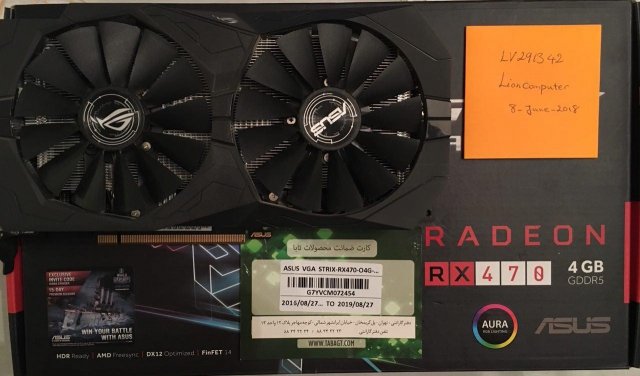 سلام دوستان، تعداد 2 عدد گرافیک Asus Strix RX470 4GB در سلامت کامل به فروش میرسند.همراه با جعبه و گارانتی:کارت با 4رقم پایانی 1932 در شماره سریال: گارانتی لایف تا 2020/9/15 (بیش از 2 سال)کارت با 4 رقم پایانی 2454 در شماره سریال: گارانتی تابا تا 2019/8/27 (14 ماه)قیمت تک: 1700 تحویل حضوری در تهران، و یا ارسال از طریق پست و تیپاکس با هزینه و مسئولیت خریدار. -