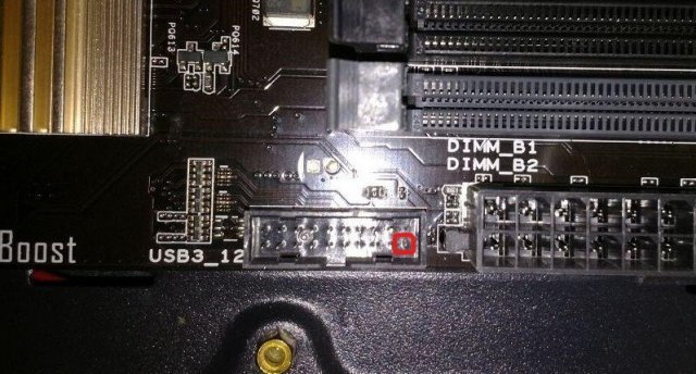 نکته: یکی از پین ها مربوط به اتصال USB های جلو کیس به مادربرد از جا کنده شده که در تصویر اخر با مربع قرمز جای پین مشخص شده است که البته این مشکل با مراجعه به تعمیرات قابل رفع هست!