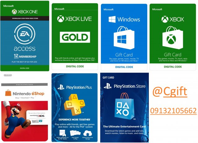 فروش گیفت PSN,XboX,Battle.net,Microsoft store,Nintendo eShop,Ea Access
