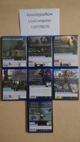 سلام بازیها کاملاً سالم و بدون خش. بازیها باهم به فروش می رسد. ارسال از طریق پست سفارشی یا پیشتاز Shadow of the Colossus (R-All) 150 God OF War (R-All) 270 The last of us remastered (R-All) 120 Bloodborne (R-All) 95 Horizon Zero Dawn (R2) 75 Uncharted 4 A Thief’s End (R2) 75 The Last Guardian (R2) 105 مجموعاً 890000 تومان -