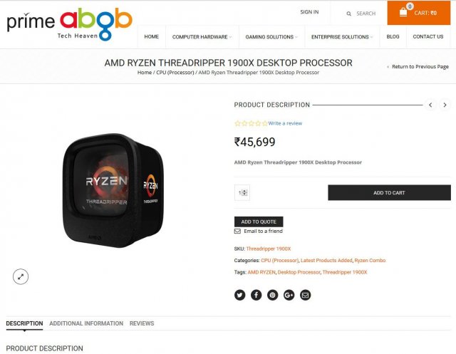 آغاز فروش پردازنده 1900X توسط AMD در کشور هند!!