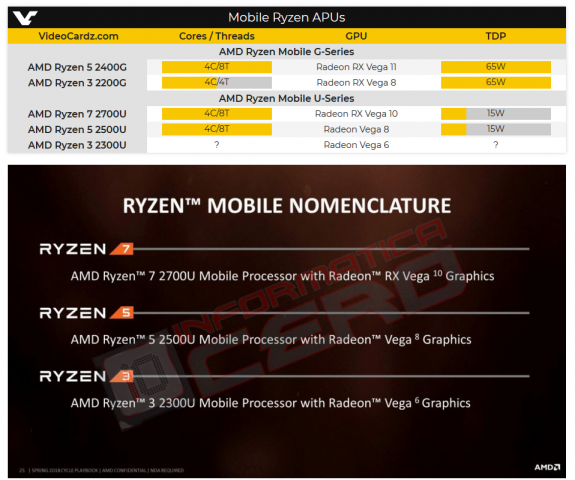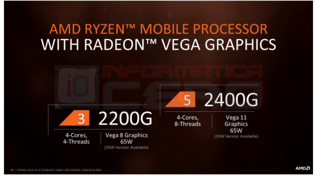 این برای اولین بار است که پردازنده گرافیکی مجتمع VEGA 11 در یک اسلاید ظاهر میشود.در این اسلاید، سری جدید پردازنده های موبایل Ryzen با گرافیک مجتمع قدرتمند تر و مصرف انرزی بالاتر ، ظاهر شده اند. اولین نمونه از این APU ها پردازنده چهار هسته ای Ryzen 5 2400G با تعداد 8 رشته پردازشی مجازی است.این APU از پردازشگر گرافیکی مجتمع Vega 11 بهره مند شده است. تمامی پردازنده های این پکیج ، مصرف انرژی بین 35 وات تا 65 واتی دارند.دیگر پردازنده نمایان شده در این اسلاید، APU Ryzen 3 2200G است ، که از چهار هسته با چهار رشته مجازی به علاوه پردازشگر گرافیکی Vega 8 بهره خواهد برد.سری U این APU ها یک SKU جدید را دریافت خواهد کرد.Ryzen 3 2300U که کندترین عضو این سری با تعداد شش واحد CU و طراحی شده بر اساس معماری VEGA خواهد بود. اما قدرتمندترین سری این APU ها از خانواده Raven Ridge مربوط به پردازشگر گرافیکی مجتمعی با تعداد 28 واحد CU و تعداد 1792 ریز پردازنده جریانی میشود که برای پلتفرم Fenghuang Raven در نظر گرفته شده است.اطلاعات منتشر شده در پایگاه Sisoft ناچیز هستند ، اما آن چیزی که به خوبی در این بین دیده میشود ، حاکی از وجود یک تراشه چهار هسته ای با 8 رشته مجازی با کد رمز “2G11SRD1P4MF6_30_N” را میدهد. منبع : Videocardz مترجم : محمد فتحی