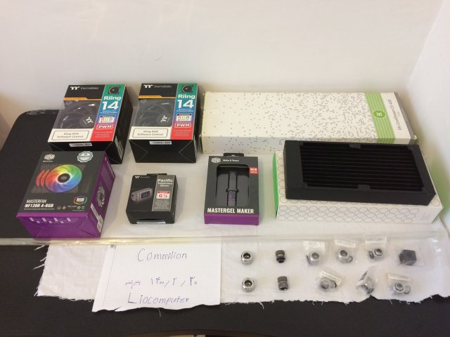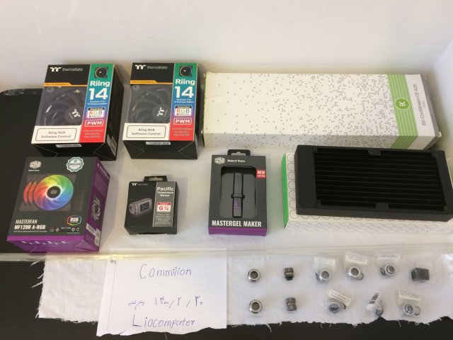 با سلام هزینه ارسال بر عده بنده هست فروش با واسطه اقای بهاور در صورت هماهنگی توسط شما قابل انجام هست قیمت ها مقطوع هست ، ولی اگر قیمت دیگه ای مد نظرتون هست برای هر قطعه داخل خصوصی ارسال کنید . 1 : فن Thermaltake RIing 14 with Controller + فن گریل دست ساز خودم مشابه اکبند هستش قیمت : 350.000 تومان 2 : فن Corsair AF140 With Ring مشابه اکبند هستش قیمت : 550.000 3 : فن CoolerMaster MasterFan Pro 140 AP & CoolerMaster MasterFan 120 AB دست دو قیمت 140 : 350.000 قیمت 120 : فروخته شده هر دو عدد 4 : ست کابل اسلیو پی سی ماد شامل 24 پین + 8 پین سی پی یو + 8 پین گرافیک + 8 پین گرافیک استفاده نشده ، نو قیمت : 600.000 5 : بلاک سی پی یو EK SuperMacy EVO Copper Plexi + AM4 & 1366 BRACKET قیمت : 2.000.000 6 : کمبو پمپ و مخزن EK XRes 140 Revo D5 PWM + 120mm Fan Bracket + TUBE 250 قیمت تیوب : 500.000 قیمت کمبو : فروخته شد 7 : رادیاتور EK 360 PE قیمت : فروخته شد 8: قیتینگ و تیوب EK 12.16 + 4 TUBE 500MM قیمت : 2.500.000 9 : XSPC THERMAL SENSOR قیمت : فروخته شد 10 : EK BloodRed قیمت : دانه ای 350 جفت 600 11 : Koolance QDC قیمت همه باهم : 2.950.000 قیمت ست دوتایی : 1.600.000 12 : EK PLUG قیمت دو عدد باهم : 300.000 13 : EK-AF T-Splitter 3F G1/4 - Black قیمت : 220.000 14 : EK-AF Ball Valve (10mm) G1/4 - Nickel + EK-AF Extender 6mm M-M G1/4 - Black قیمت : فروخته شد 15 : LED 3mm Twin Ultra White قیمت : 120.000 16 : EK DIY 16 قیمت : 300.000 با تشکر