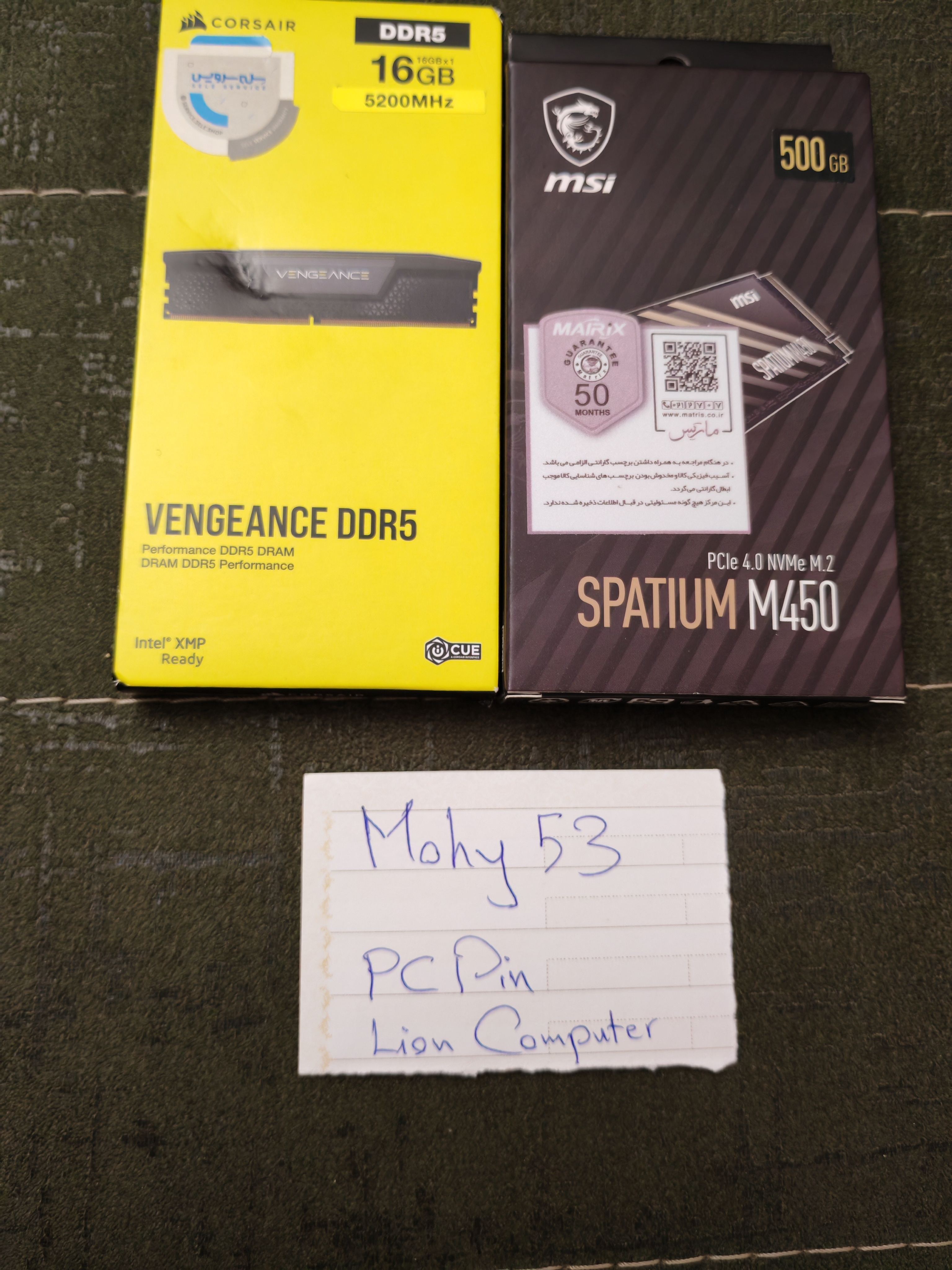 رم 16 گیگ Corsair DDR5 و SSD M2 MSI 500GB هردو آکبند , مادربرد Asus H510M-E