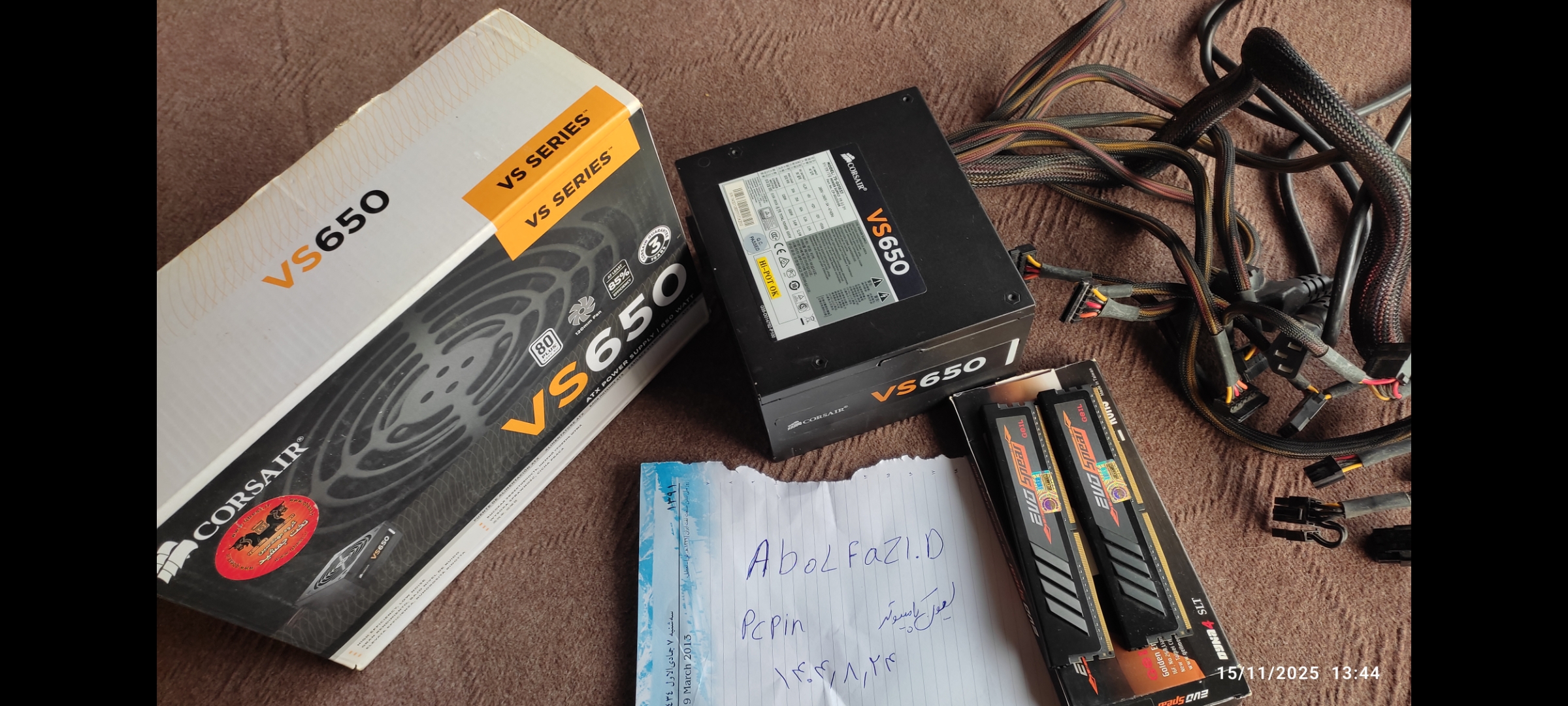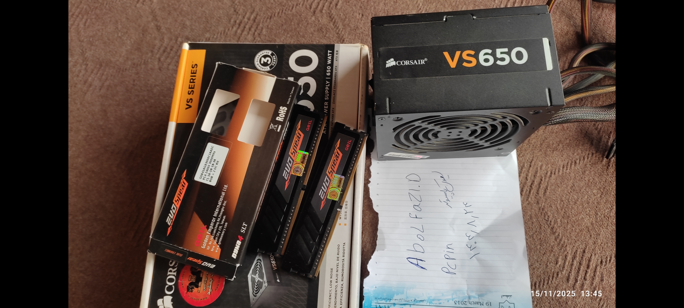 مزایده رمDDR4 GEIL 16GB (2*8GB) 3000 EVO SPEAR و پاور Corsair VS650